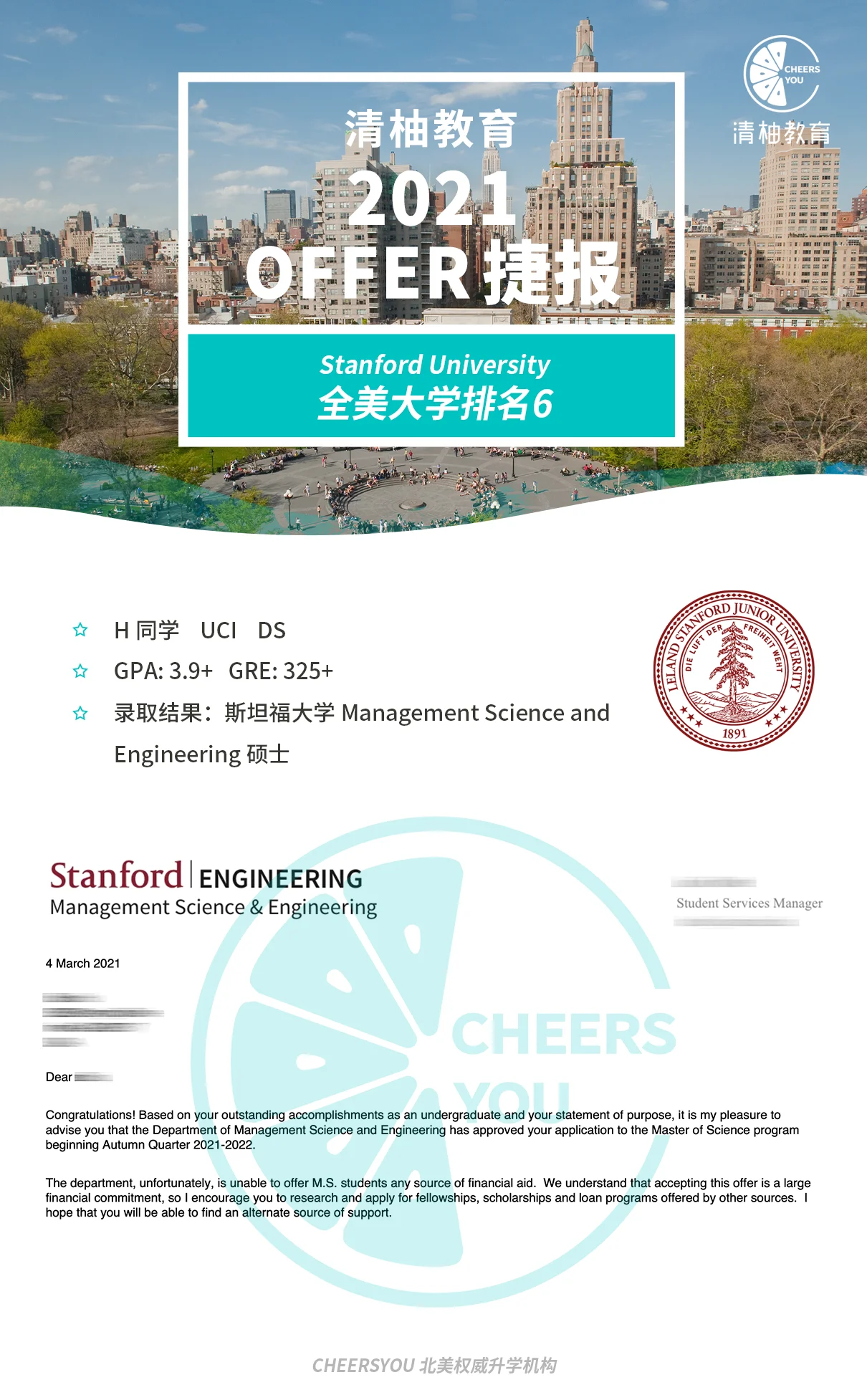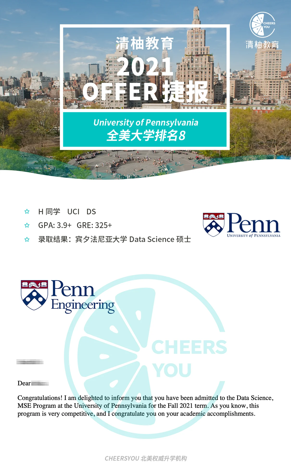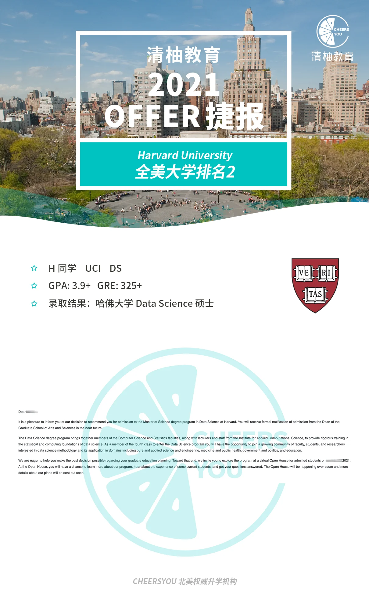 目前录取:哈佛大学Data Science硕士,斯坦福大学Management Science and Engineering硕士,宾夕法尼亚大学Data Science硕士,南加州大学等