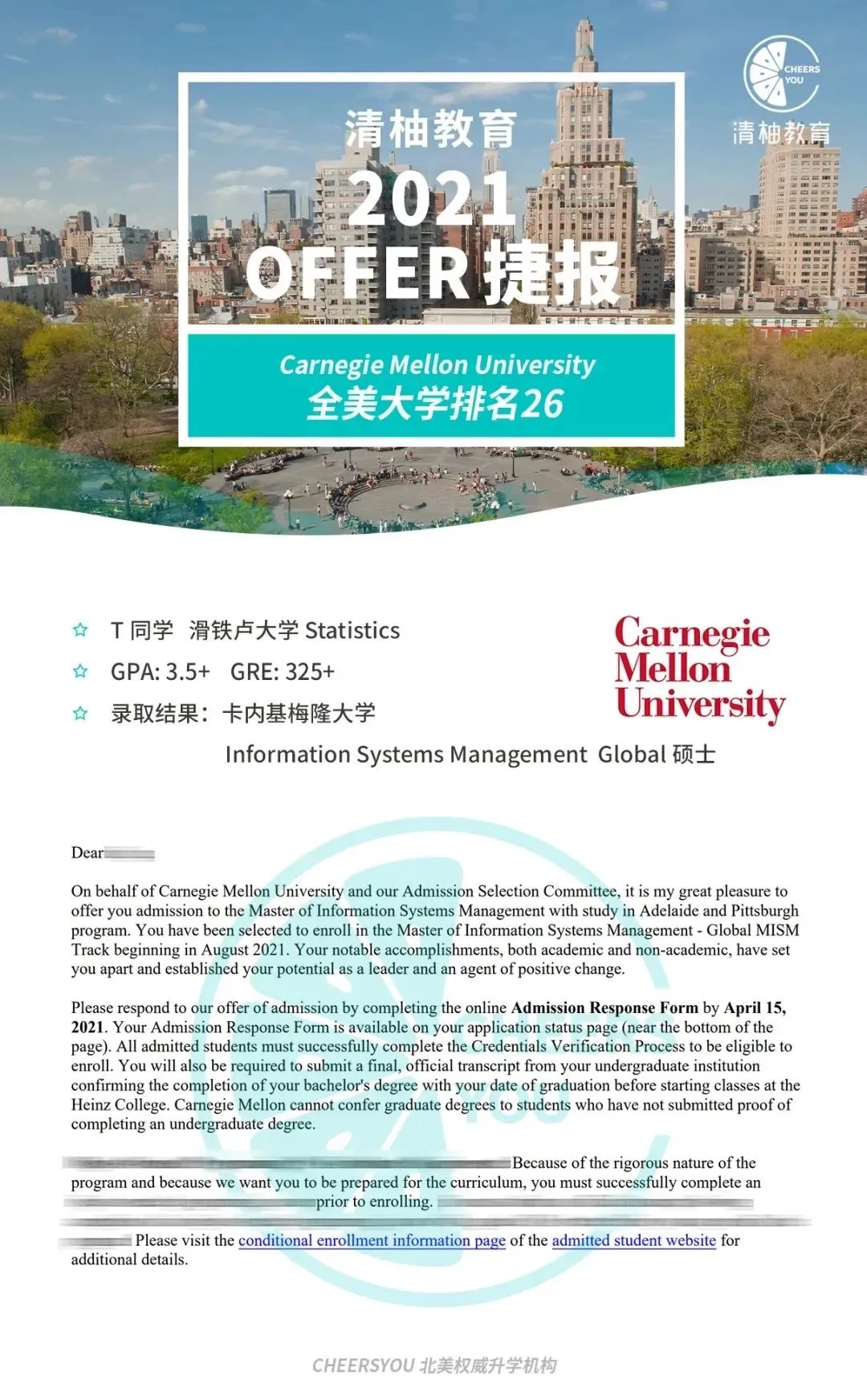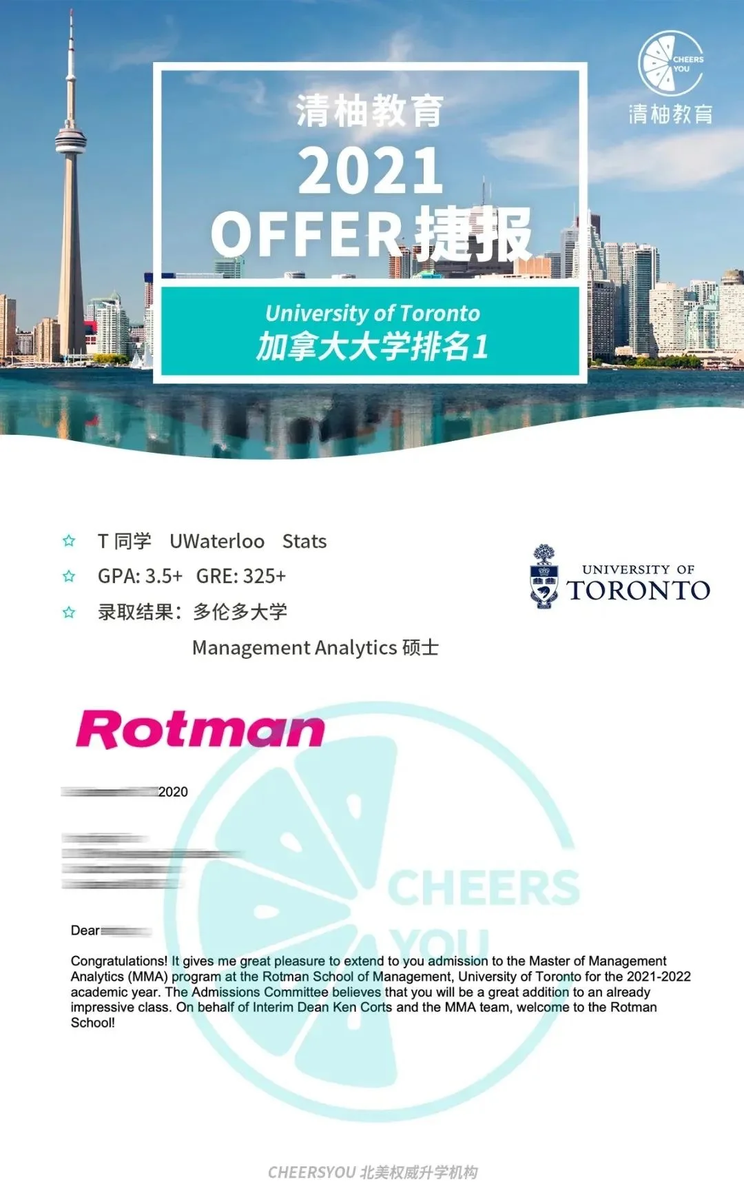 录取学校:多伦多大学Management Analytics硕士,西安大略大学Data Analytics硕士,卡内基梅隆大学Information Systems Management硕士,布兰迪斯大学Computer Science硕士,等