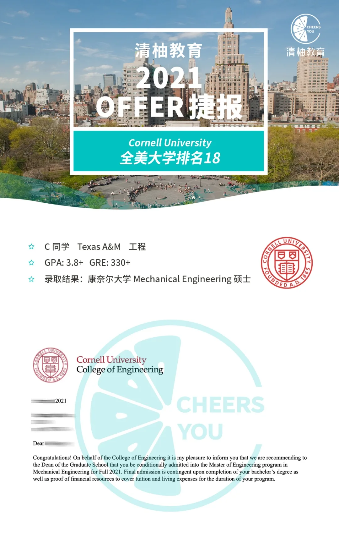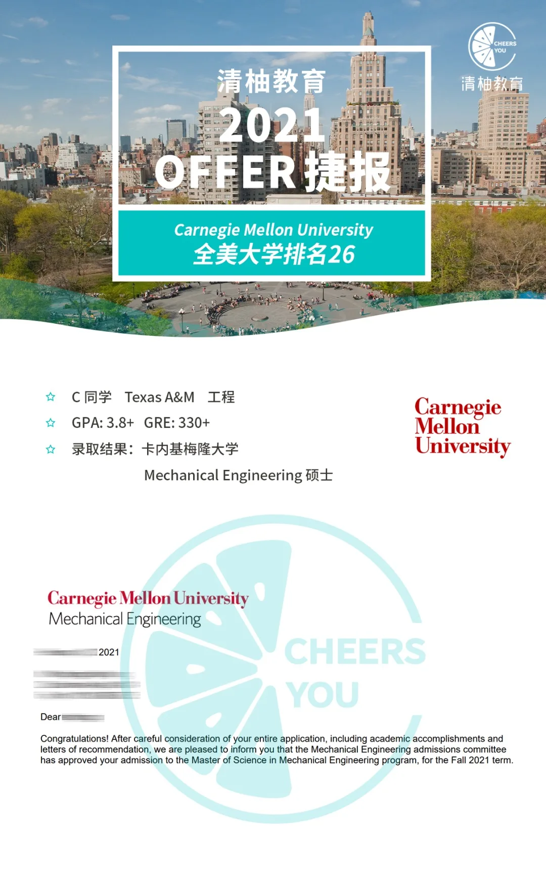 录取学校:斯坦福大学工程硕士,卡内基梅隆大学Mechanical Engineering硕士,康奈尔大学Mechanical Engineering硕士,纽约大学Mechanical Engineering硕士,等