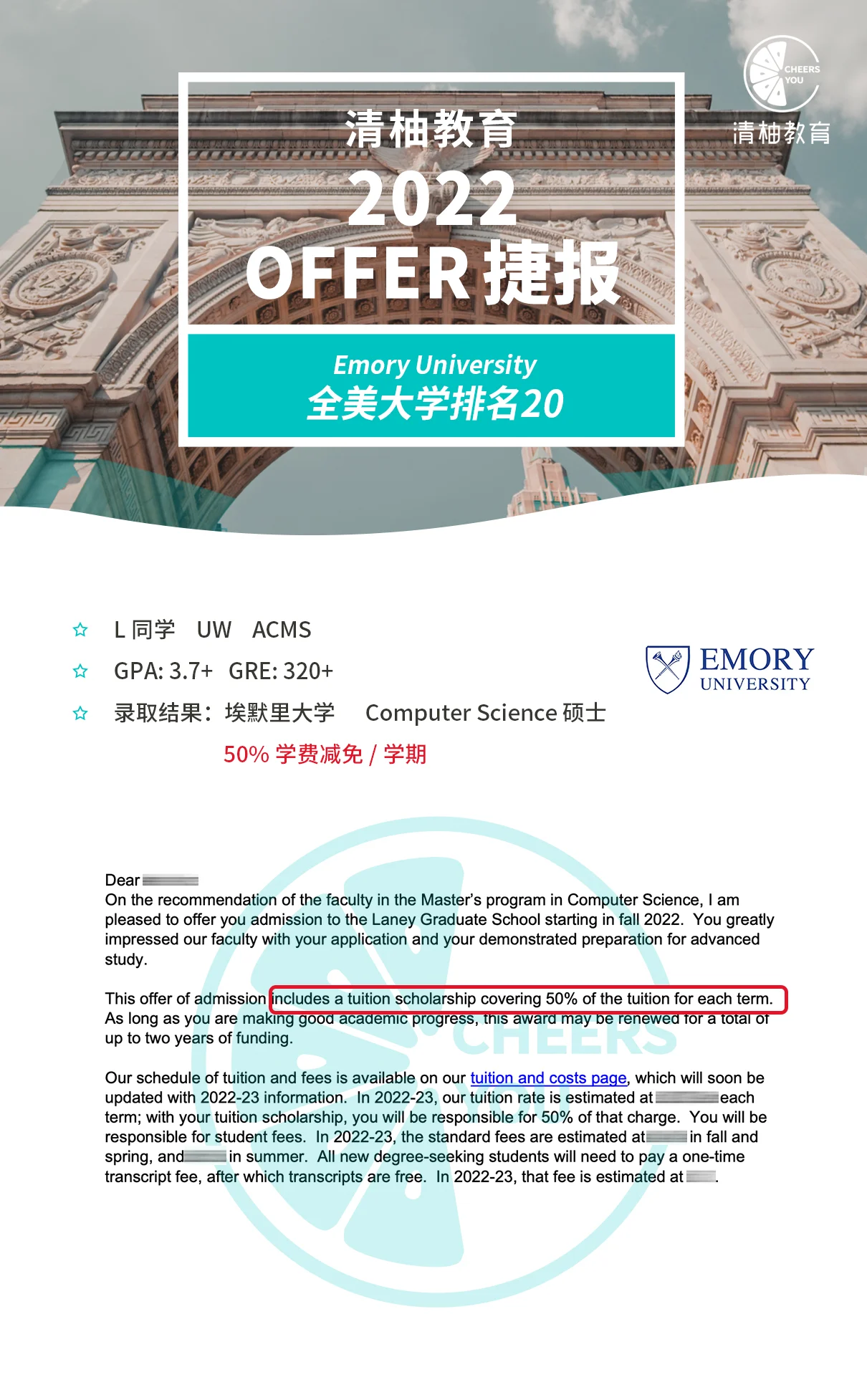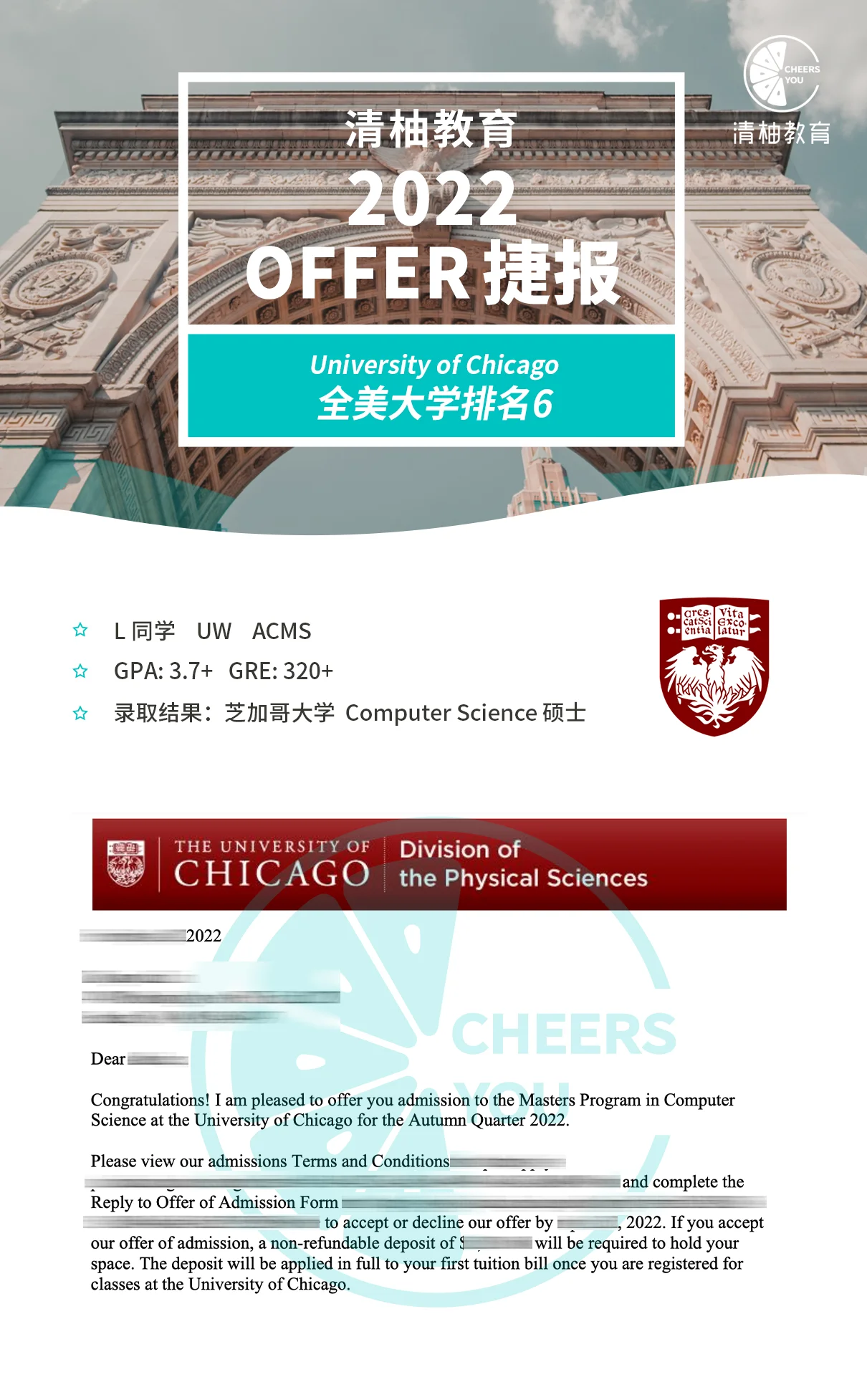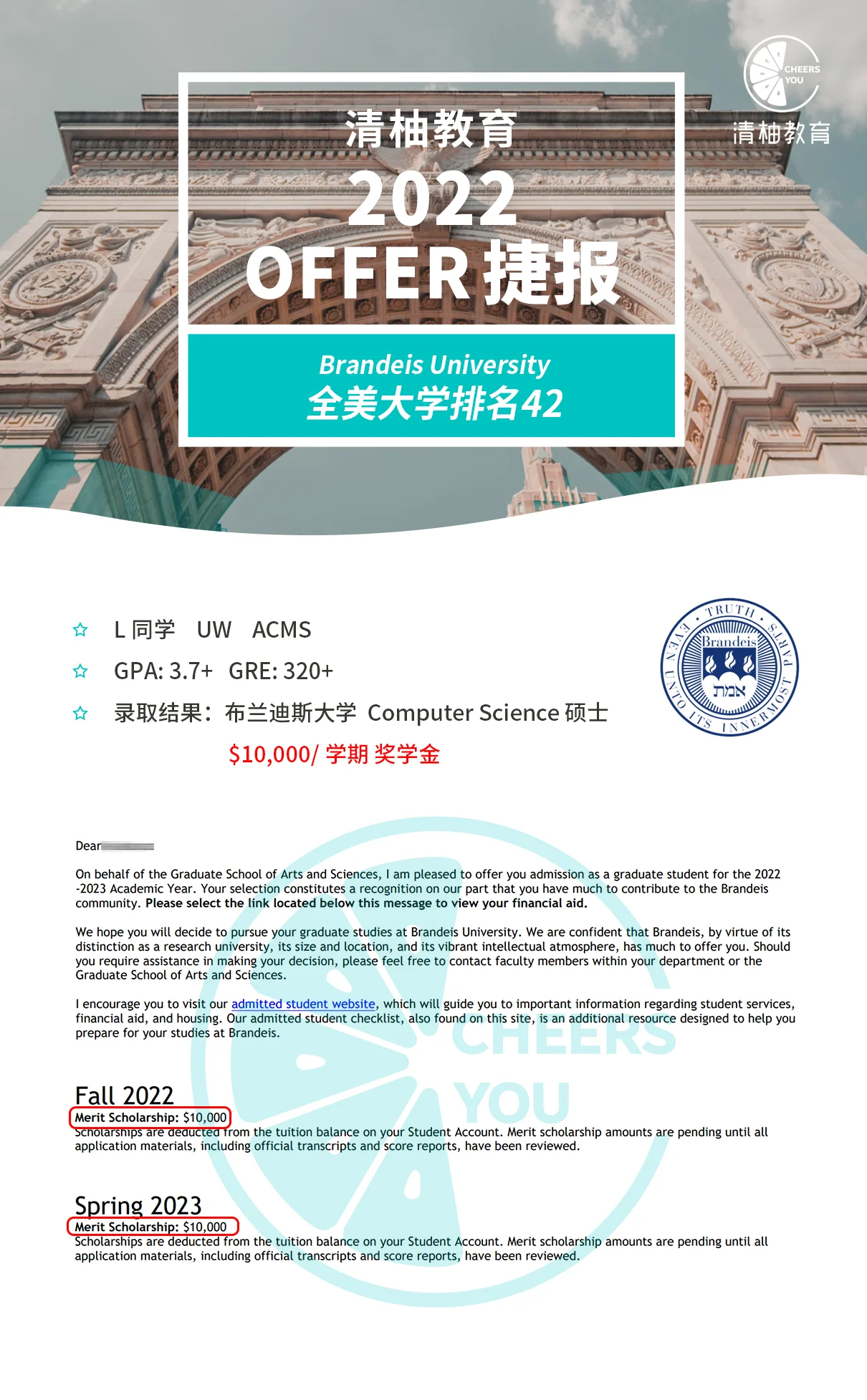 录取:芝加哥大学CS硕士,南加州大学CS硕士,圣路易斯华盛顿大学CS硕士,埃默里大学CS硕士 50%学费减免/学期,布兰迪斯大学CS硕士 $10,000/学期奖学金等