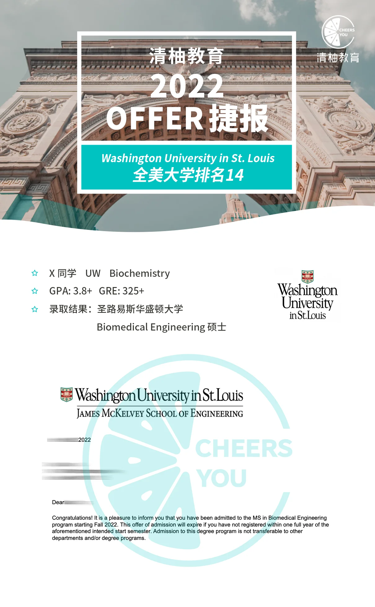录取:宾夕法尼亚大学Bioengineering硕士,杜克大学BME硕士,约翰霍普金斯大学BME硕士,圣路易斯华盛顿大学BME硕士,南加州大学等