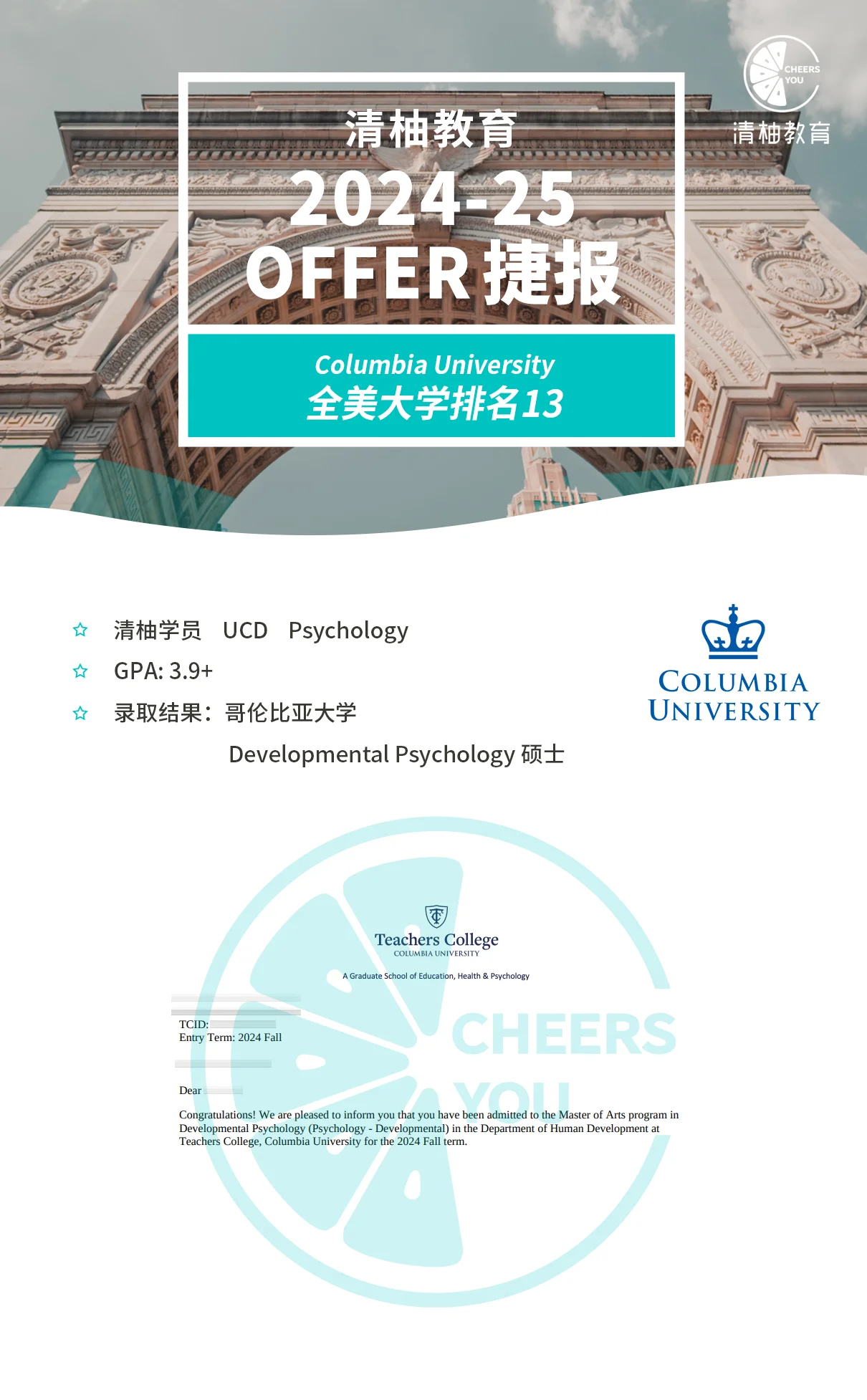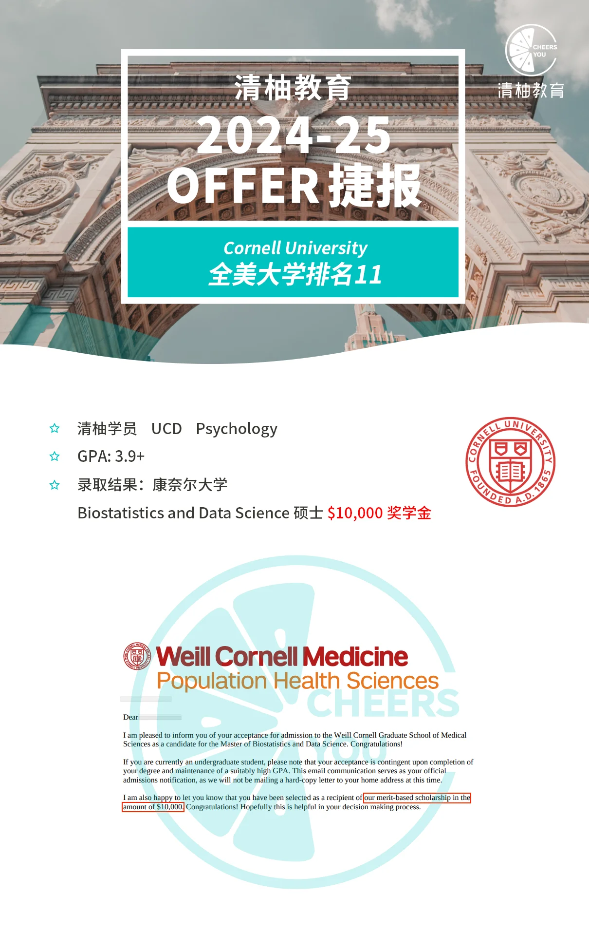 心理生统双管齐下!UCD学姐拿下哥大双录取,康奈尔万奖邀约!