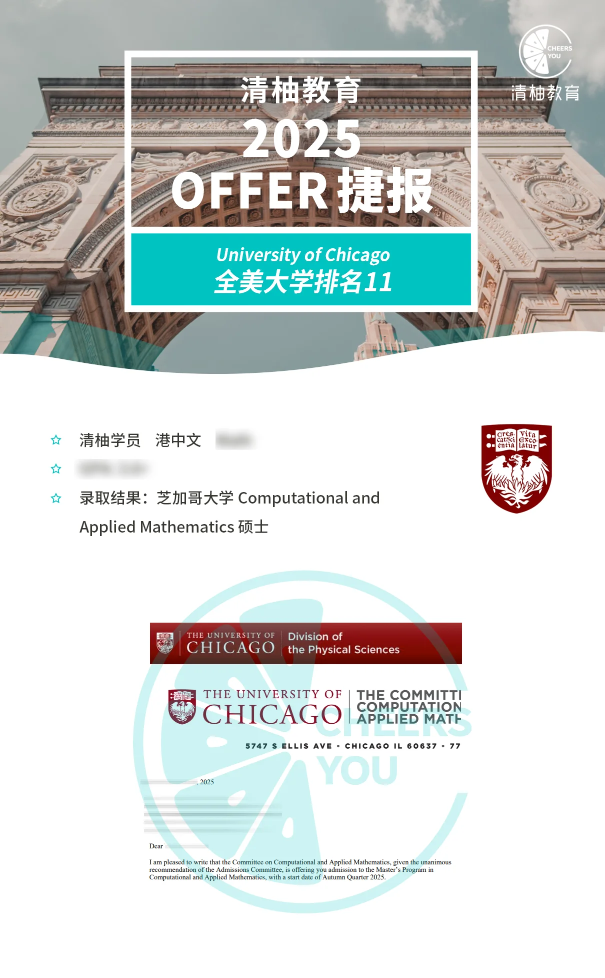 芝加哥大学Computational and Applied Mathematics硕士录取!