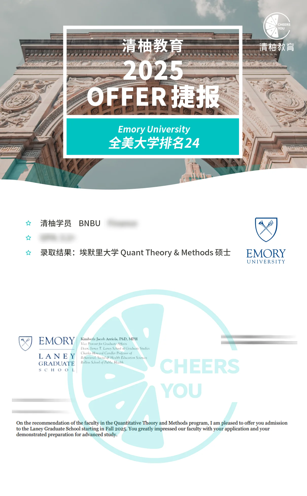 埃默里大学Quantitative Theory and Methods硕士录取!