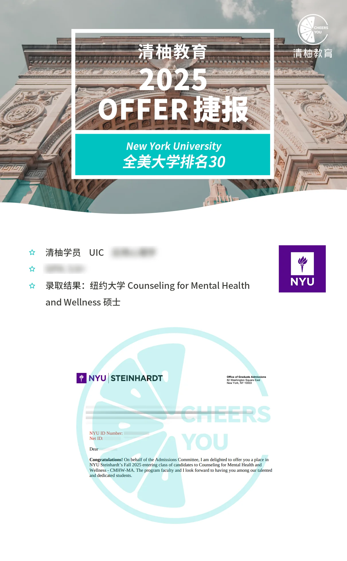 纽约大学Counseling for Mental Health and Wellness硕士录取!