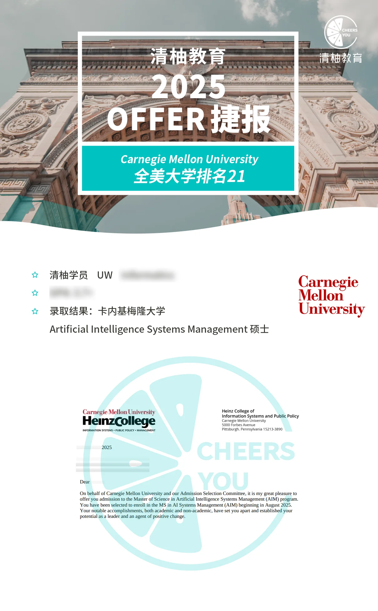 卡内基梅隆大学Artificial Intelligence Systems Management硕士录取!