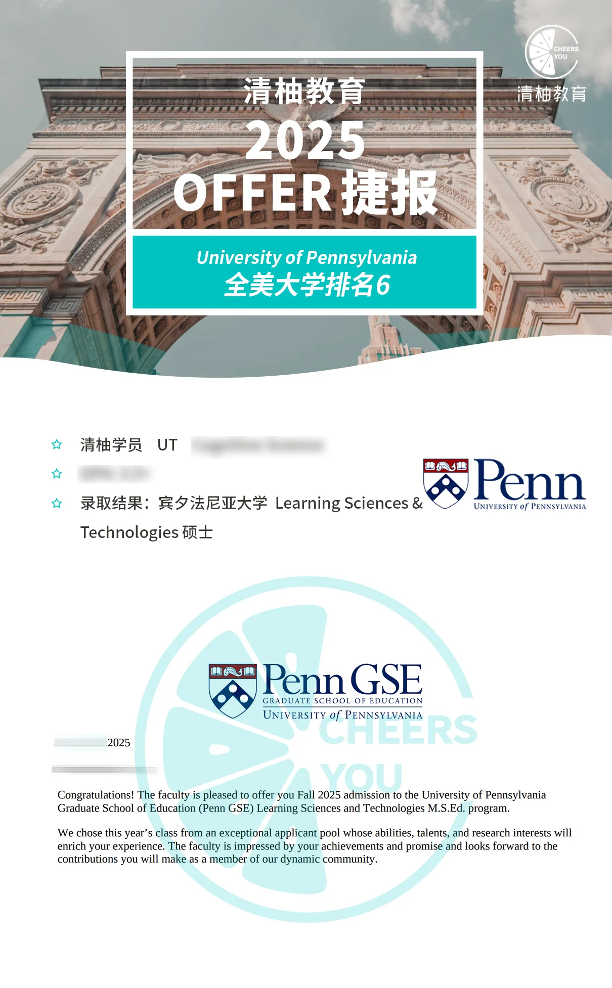 宾夕法尼亚大学Learning Sciences and Technologies硕士录取!