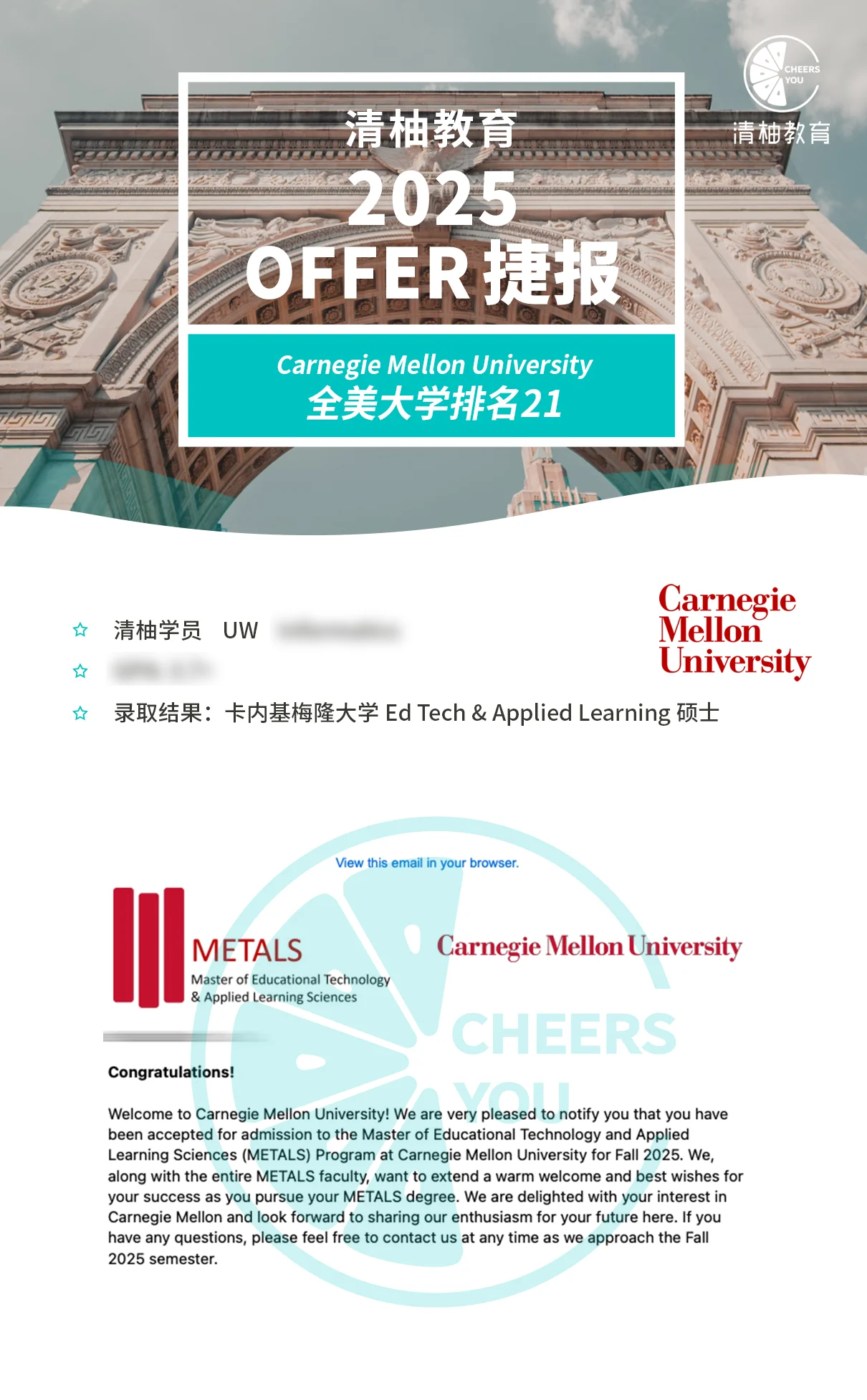 卡内基梅隆大学Educational Technology and Applied Learning Sciences硕士录取!