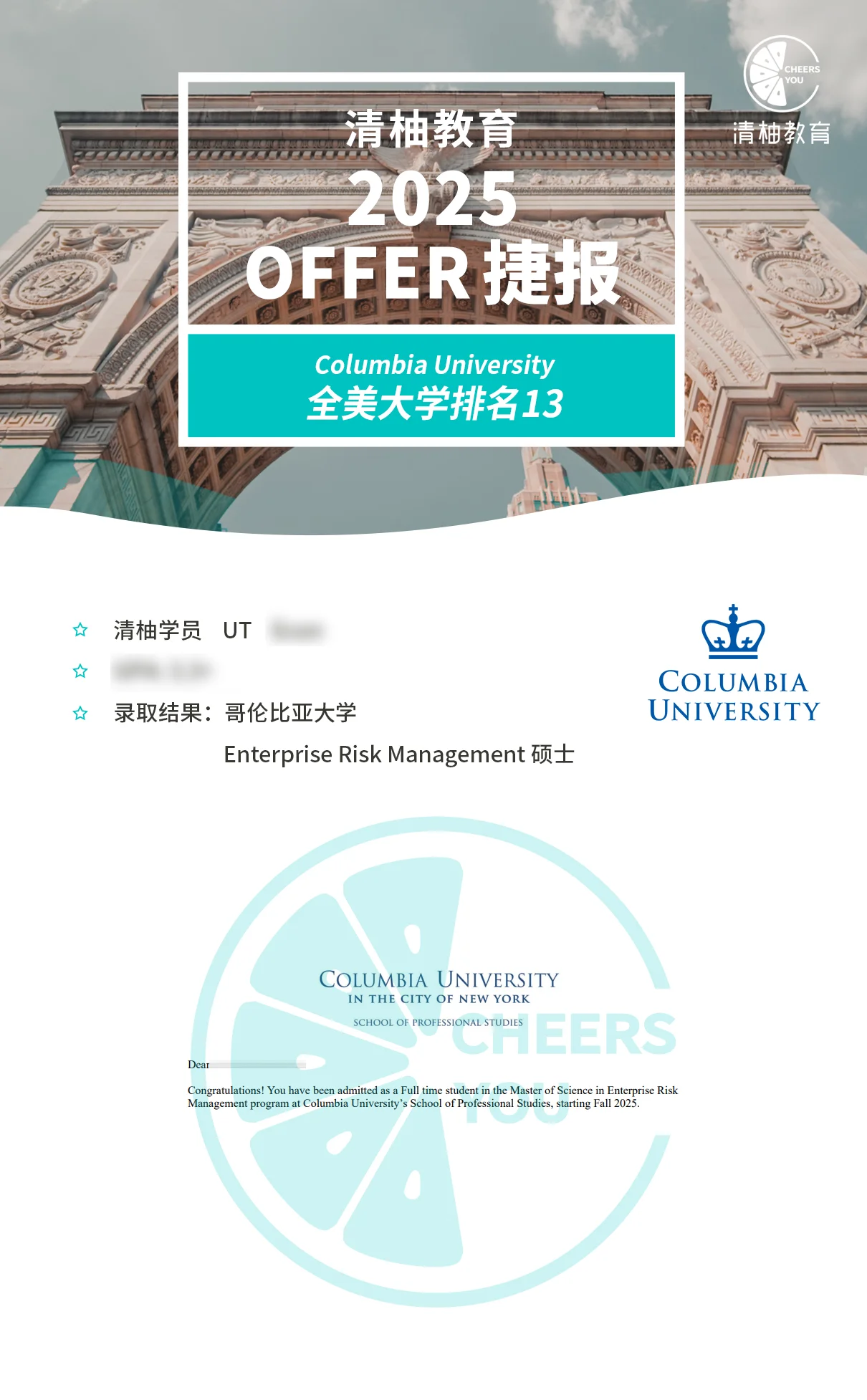 哥伦比亚大学Enterprise Risk Management硕士录取!