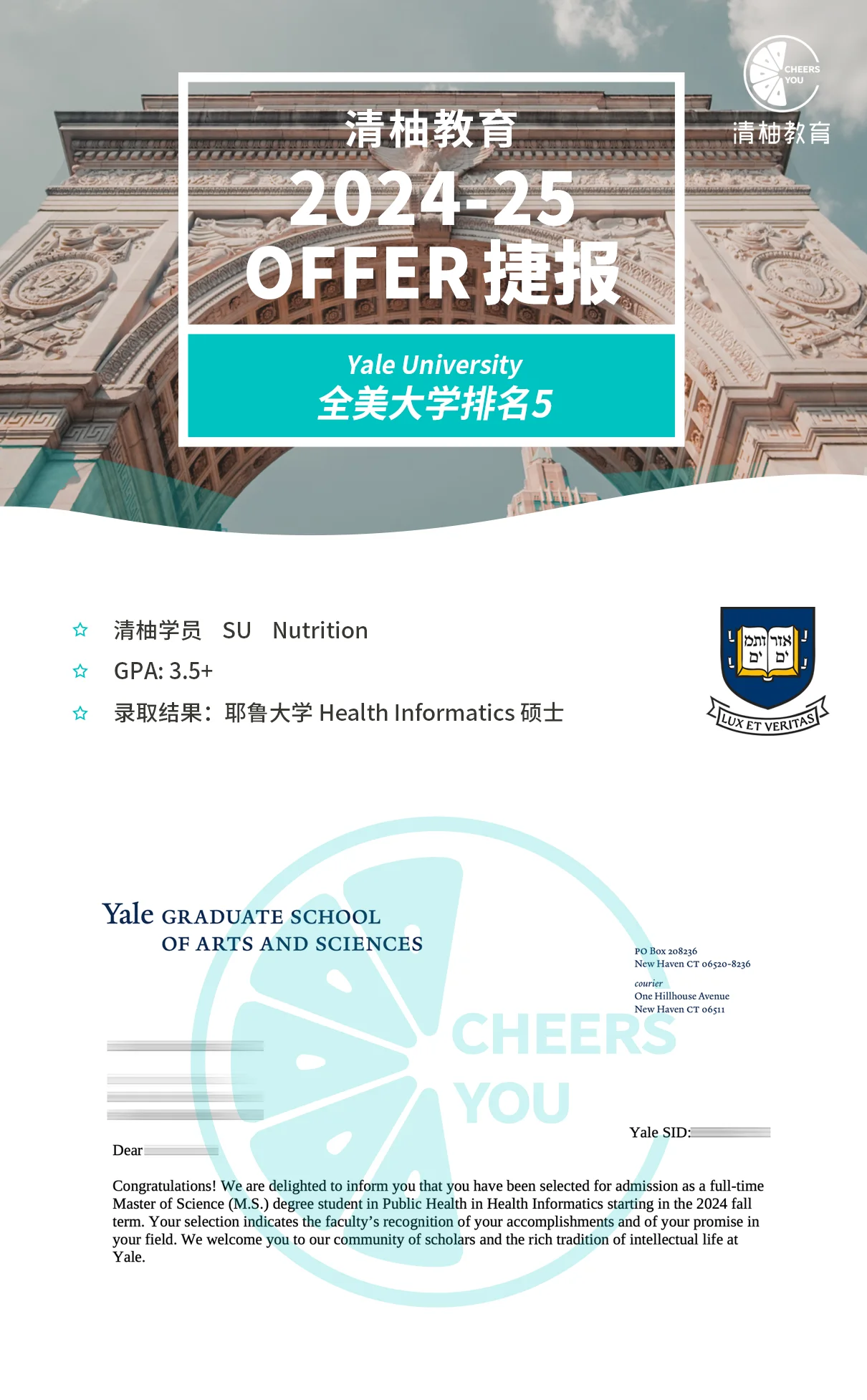 工作两年重新再战,二硕申请直击耶鲁,雪城学姐拿下健康信息学!
