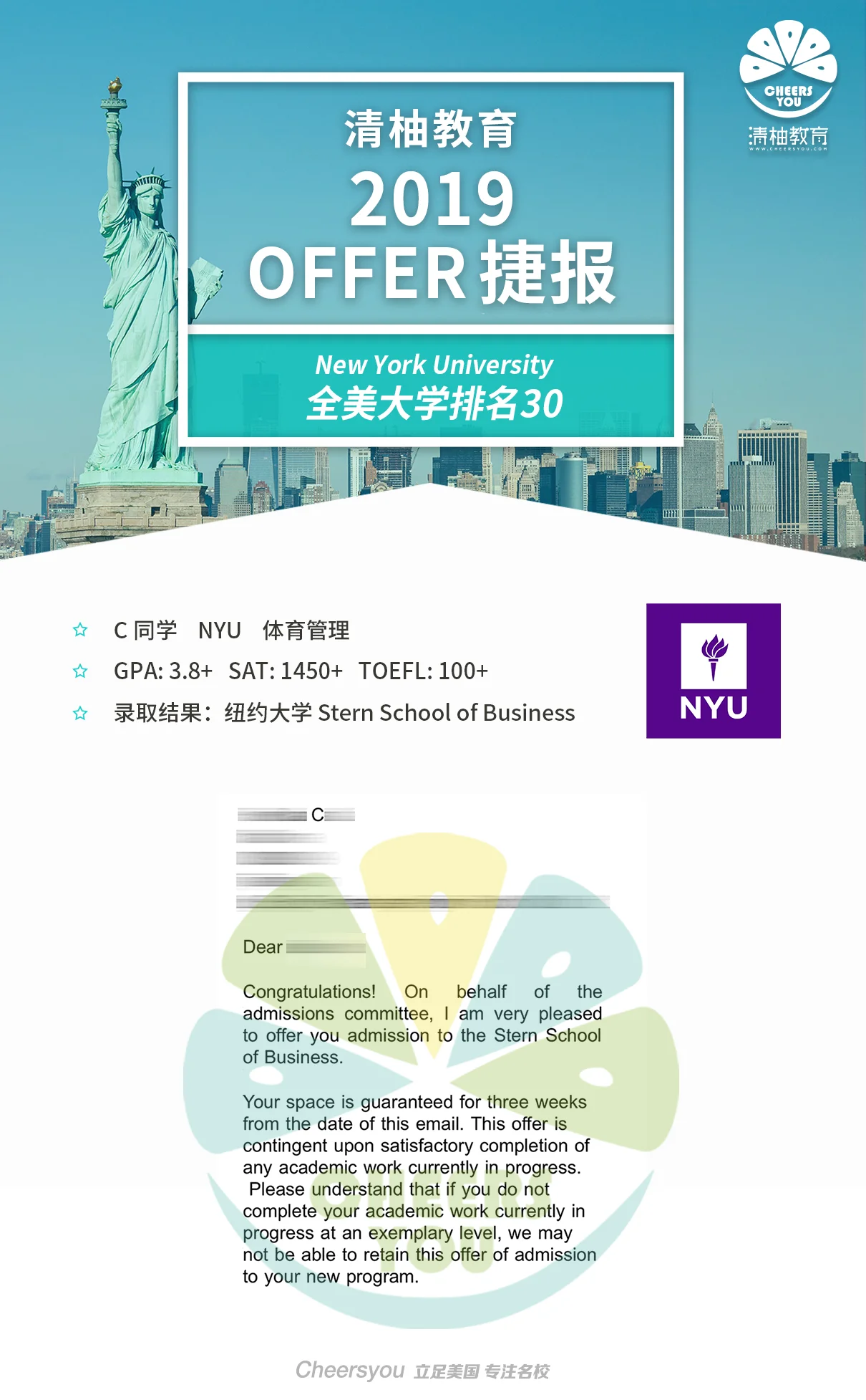 从SPS到Stern,是距离的一小步,人生的一大步。希望清柚能帮助更多学生圆梦!