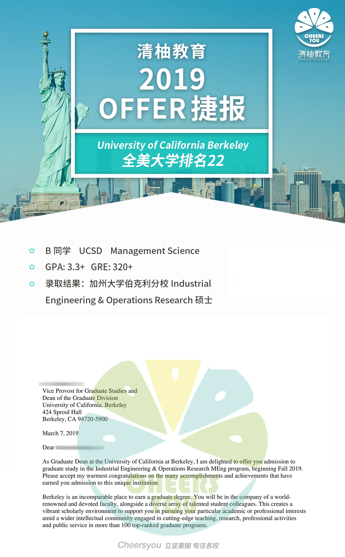 录取:UCBerkeley IEOR硕士+$20,000奖学金,NYU等