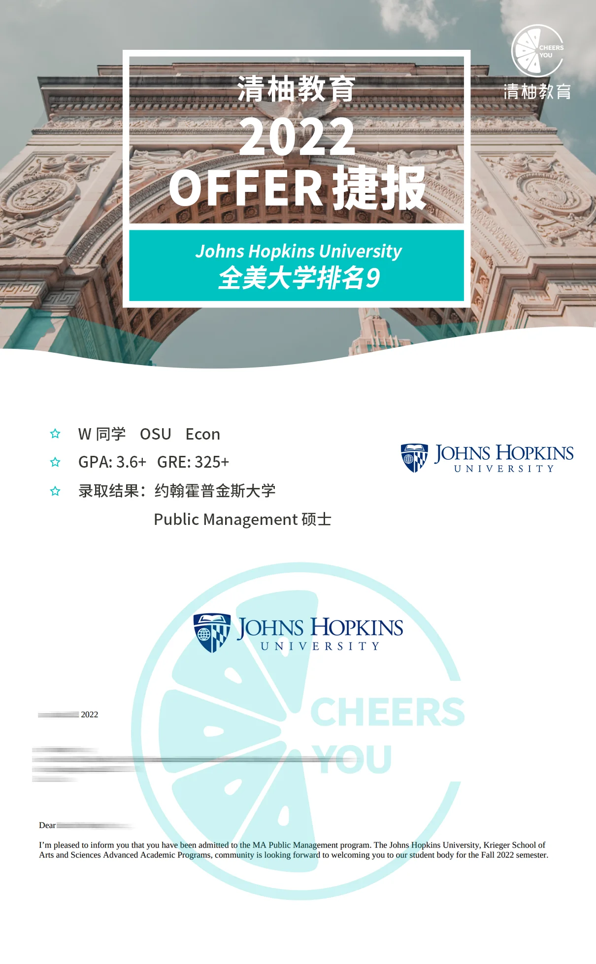 录取院校:约翰霍普金斯大学Public Management硕士,约翰霍普金斯大学International Relations硕士,纽约大学MPA硕士,纽约大学Global Affairs硕士,南加州大学等