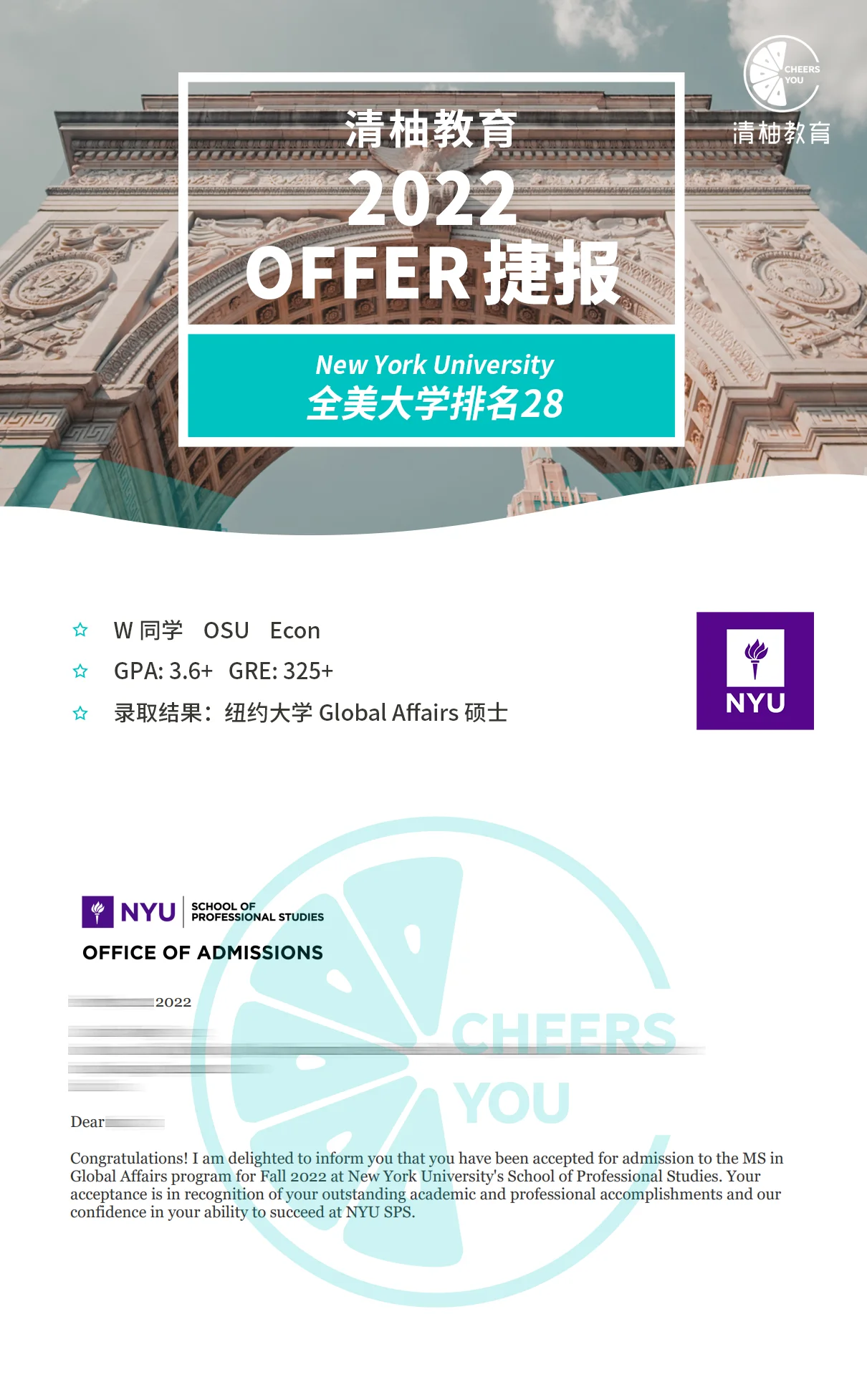 申请提交后不久,包括JHU, NYU, USC在内的各大名校都陆续下了offer,Jack的申请季也算画上了一个圆满的句号。