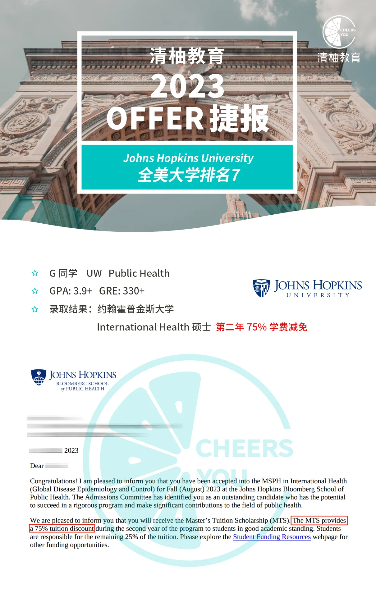 约翰霍普金斯大学International Health硕士录取!75%学费减免!