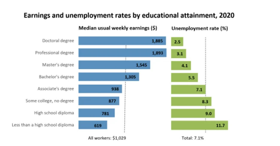 2020 教育行业学位薪金分布情况: