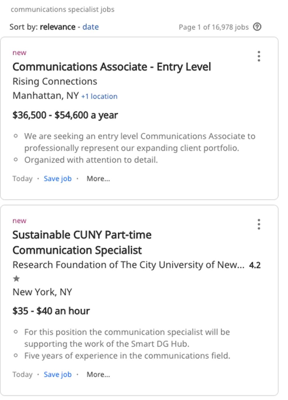 - Communication 类岗位市场需求量很大,大多数实习为Unpaid Internship