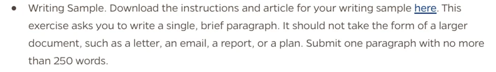 Q: Writing sample 如何准备?还有哪些其他条件是要申请学生具备的?