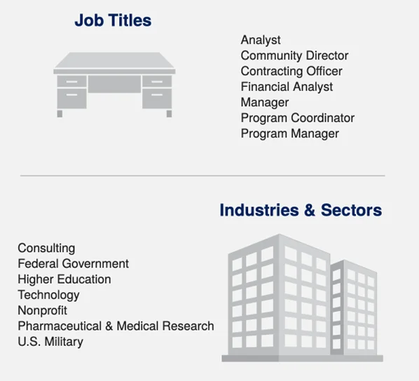 上图为乔治城大学提供的PM专业就业的部分职位和方向供感兴趣的同学参考。