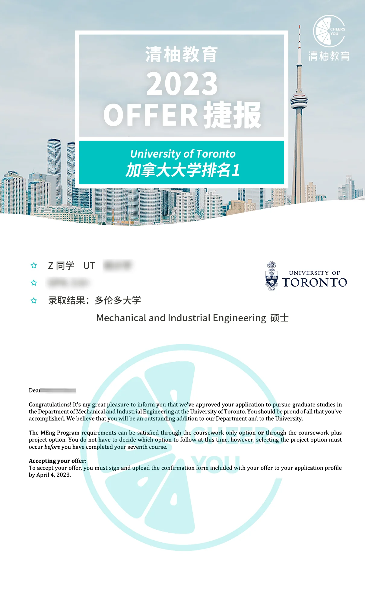 多伦多大学Mechanical and Industrial Engineering硕士录取!