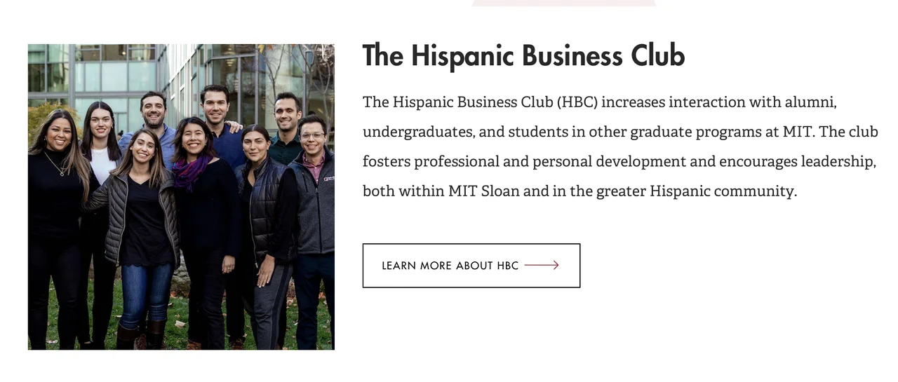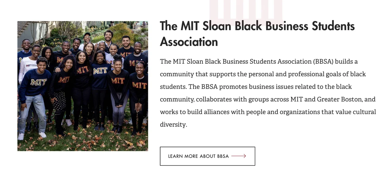 - 麻省理工学院斯隆管理学院有面向所有兴趣和亲和力团体的学生俱乐部。这些俱乐部组织支持其成员的活动,并解决对全球地区、妇女和弱势人群重要的商业主题。麻省理工学院更广泛的社区活动,加上国际化和多元化的剑桥和波士顿城市,创造了丰富的教育环境。