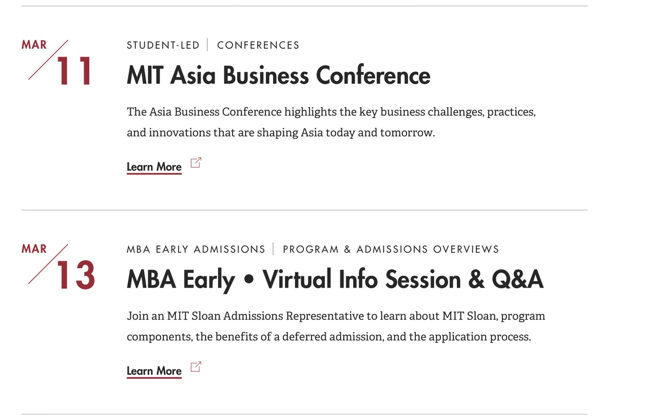 - 每月会举办丰富的线上+线下研讨会,比如MIT管理创新会议、麻省理工学院亚洲商业会议等。
