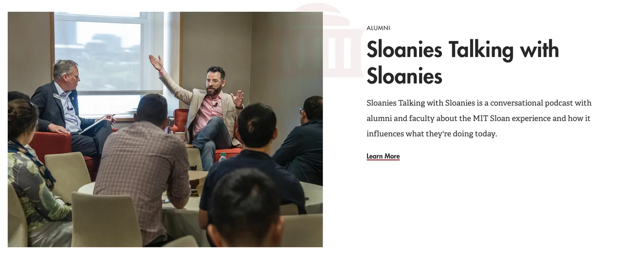 - Sloan Talking with Sloanies 是一个与校友和教师对话的播客,讲述麻省理工学院斯隆管理学院的经历,以及它如何影响他们今天的工作。