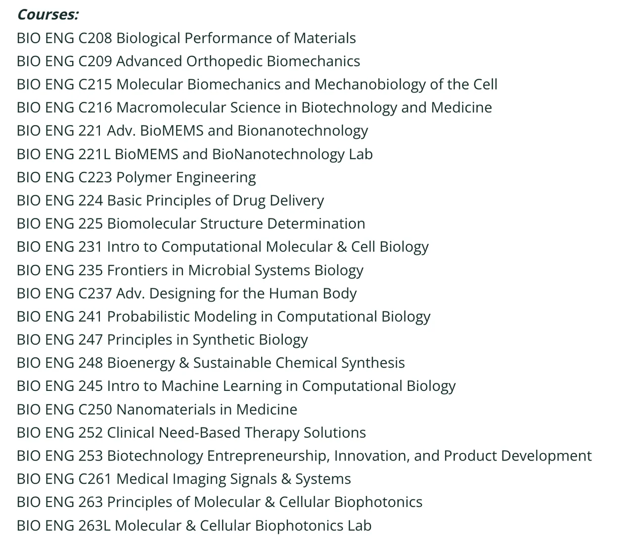 - 项目介绍:生物工程工程硕士(M.Eng)学位是加州大学伯克利分校一个新的和快速发展的项目。课程非常强调工程和企业家精神,专为计划在完成课程后直接进入行业的学生设计。这个一年制专业项目的毕业生对技术和经济有综合的理解,这使他们能够迅速在工程职业生涯中担任领导角色。