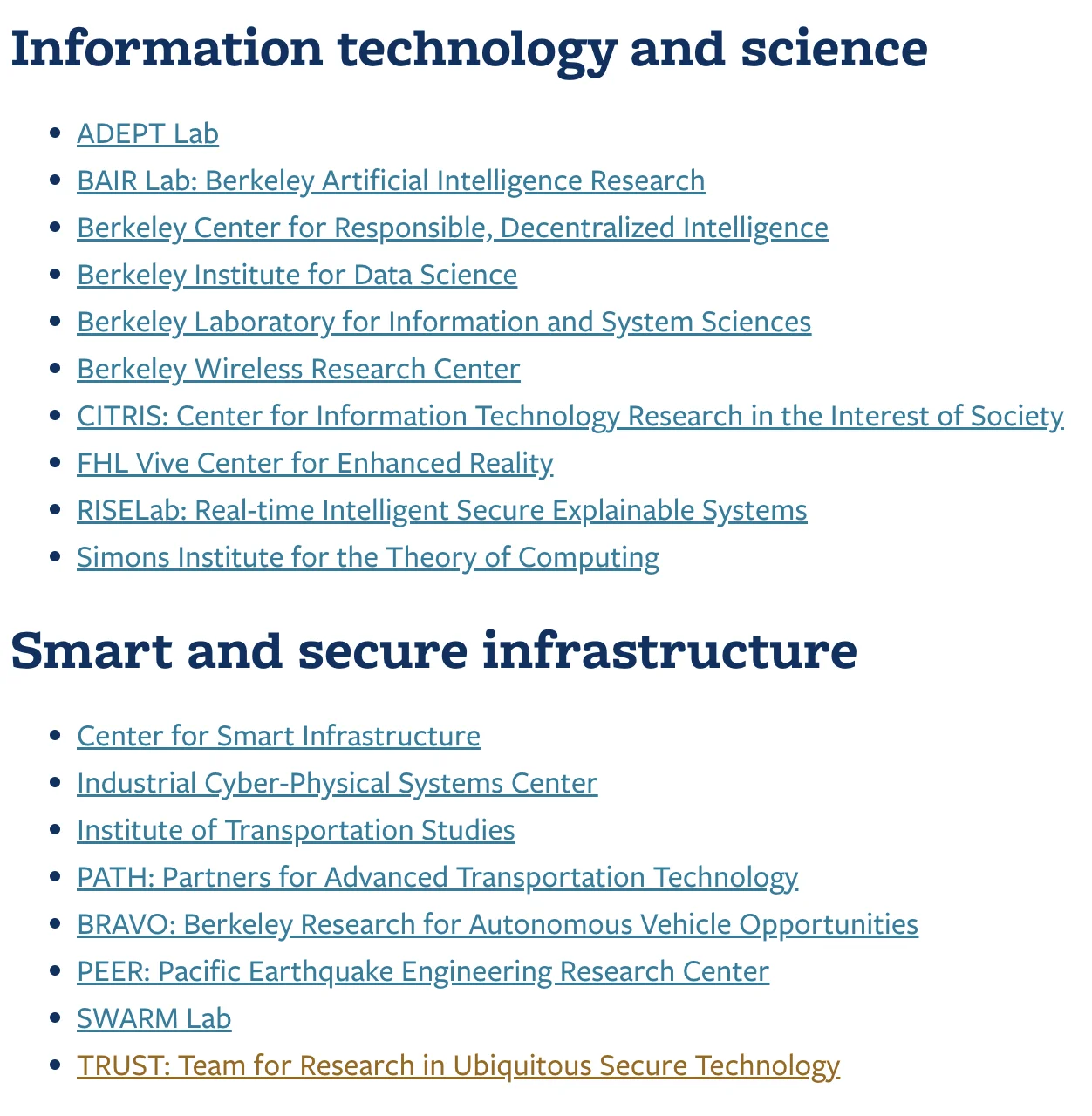 - 伯克利工程学院的研究中心、研究所和实验室促进跨学科合作,以扩大对全球挑战的影响。在这里,我们的教师与业界同行互动,为学生提供前沿领域的高级培训。