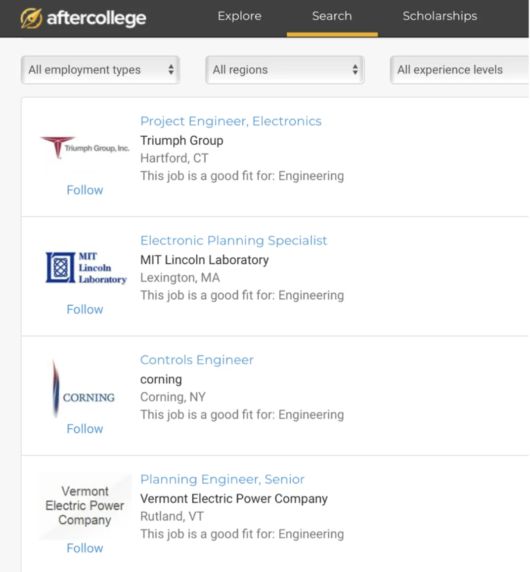 - 该项目所在的Electrical and Computer Engineering部门有自己的求职系统:aftercollege,该系统上均为与此部门相关的工作/实习机会。