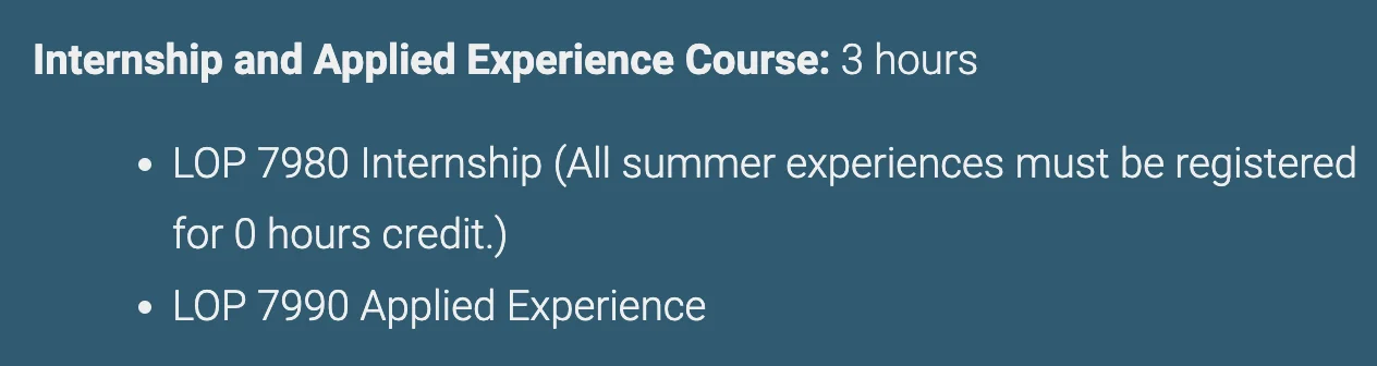 - 课程设置:该课程需要36个学分,全日制学生需要两年左右的时间才能完成。大多数课程在晚上或周末上课,让你在完成课程的同时从事兼职工作。工作时间灵活,允许你在完成课程要求的同时保持就业。