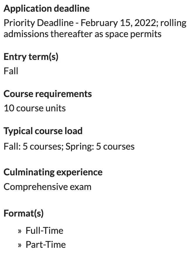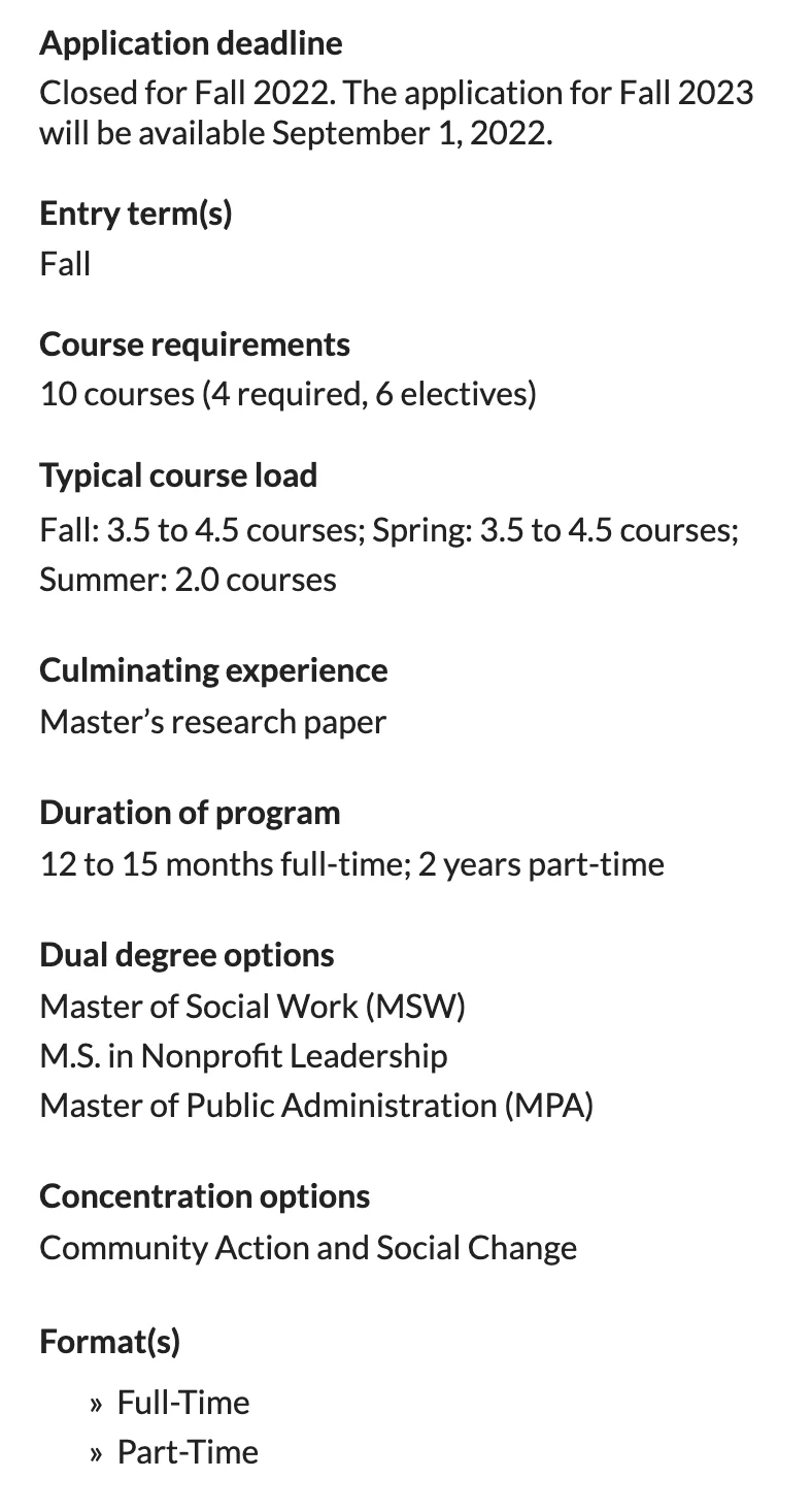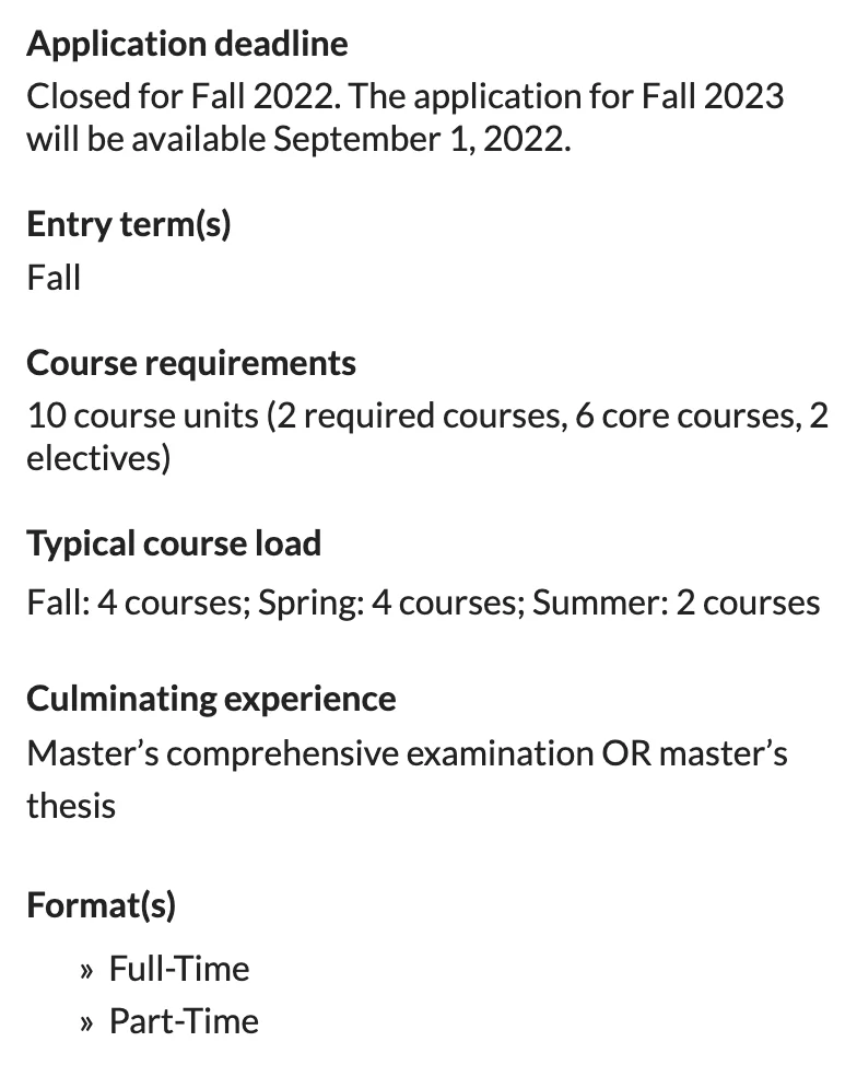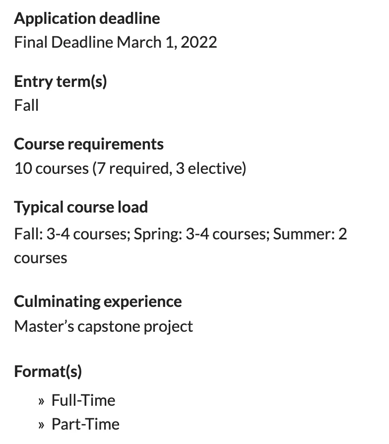 ⚠️:此项目为Programs for Working Professionals,不是非常适合学生申请