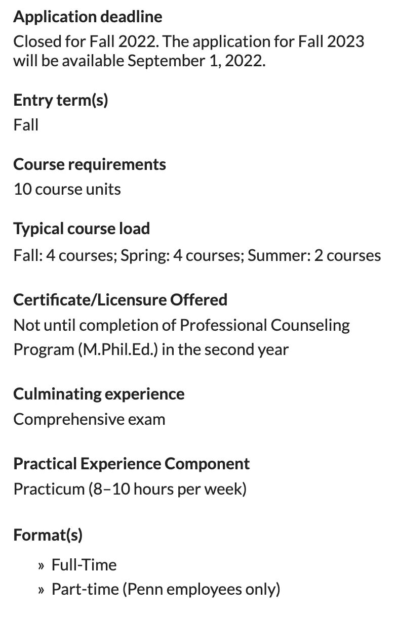 - Executive Program in School and Mental Health Counseling (Licensure, M.S.Ed.)