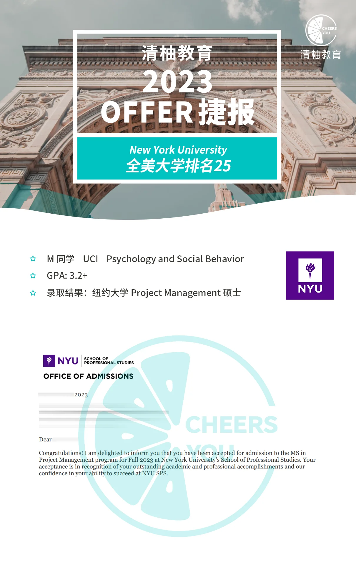 与此同时,他也收获了纽大、乔治城、南加大等热门项目offer。他对自己的未来充满了信心,并且已经开始着手为即将到来的研究生学习和生活做准备。