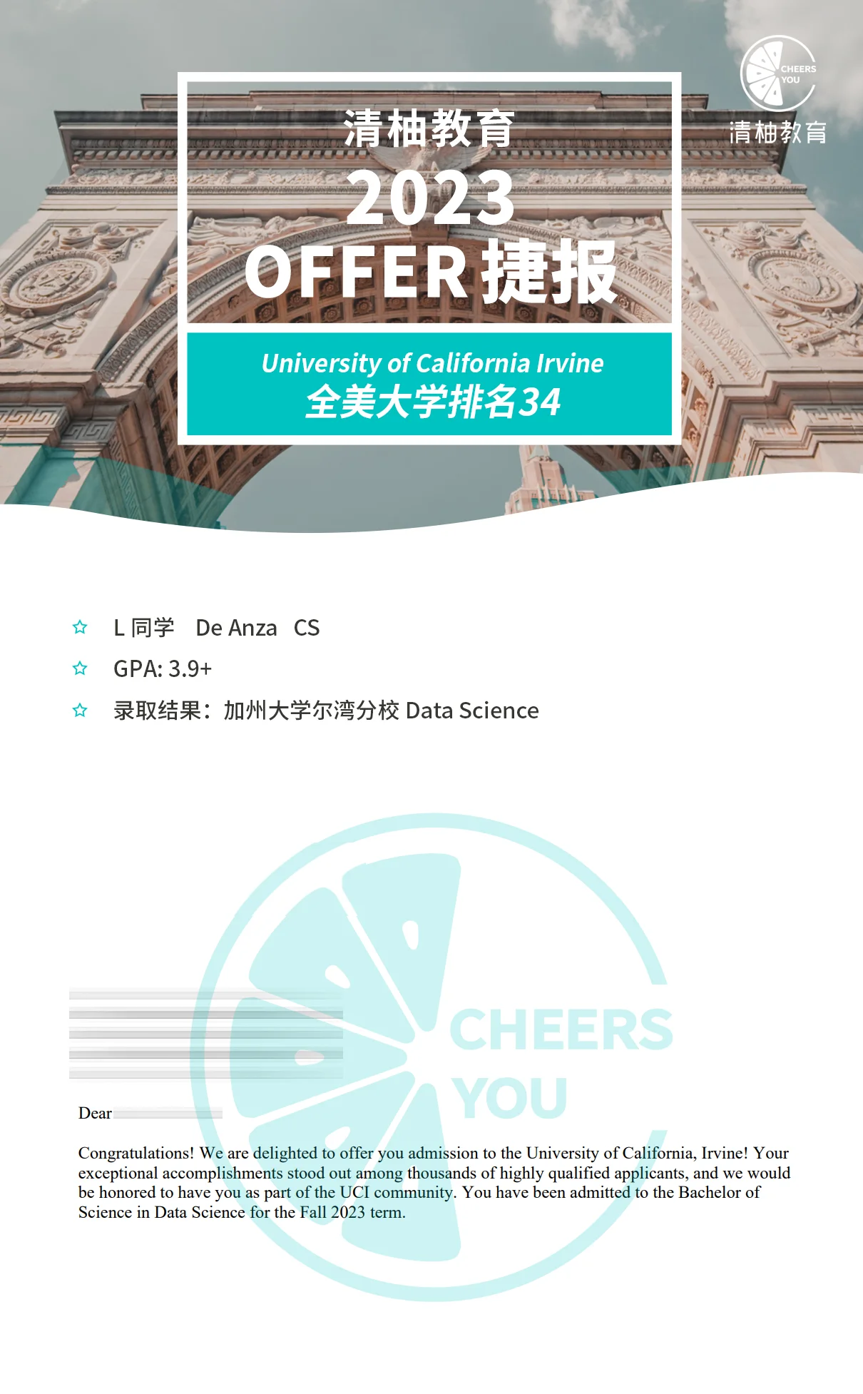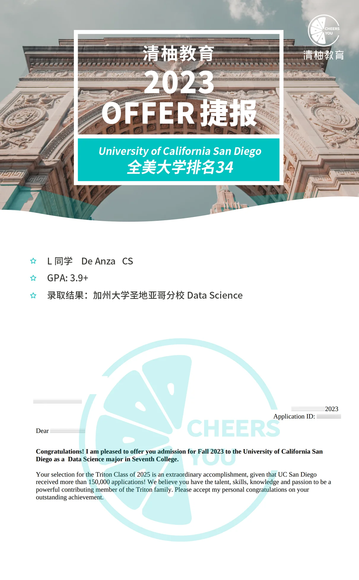 在身边很多同学的推荐下,他联系到清柚的老师,做了详细的咨询规划,也希望自己能在专业老师的引导下,收获最想去的加州大学录取offer。
