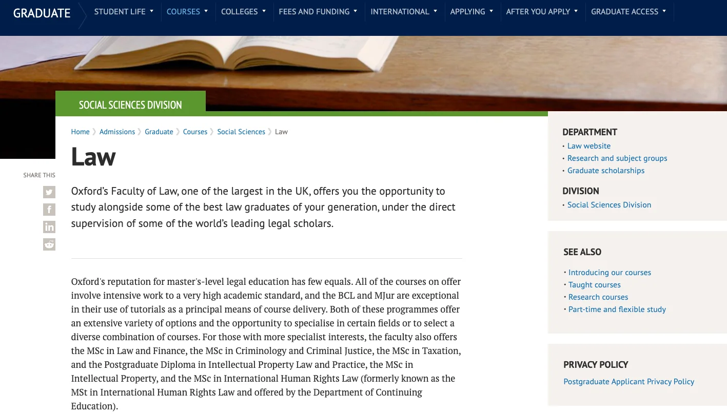 牛津大学法学院是英国最大的法学院之一,也是全球最知名和顶尖的法学院之一,拥有1:7的师生比和英语语言国家中最大的法学博士研究生项目。牛津大学法学院以其卓越的学术成就和研究质量而闻名。学院内拥有一流的法学教师和研究人员。