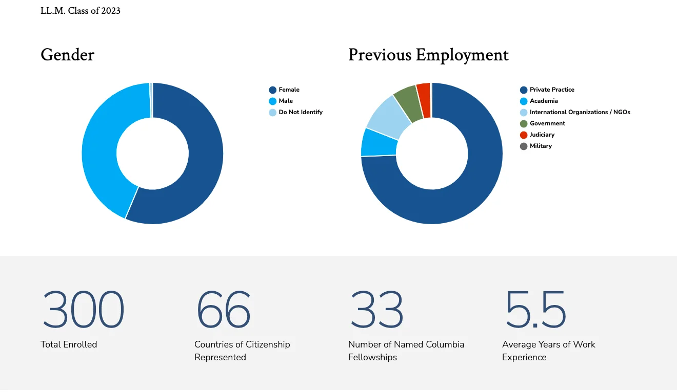 哥大的招生标准比起Top3的法学院要相对低一点,但是更倾向于招收在一线律所已经有过多年经验的的律师,录取学生非常精英化。从2011年至今,哥大法学院从未录取过毫无工作经验的本科生。