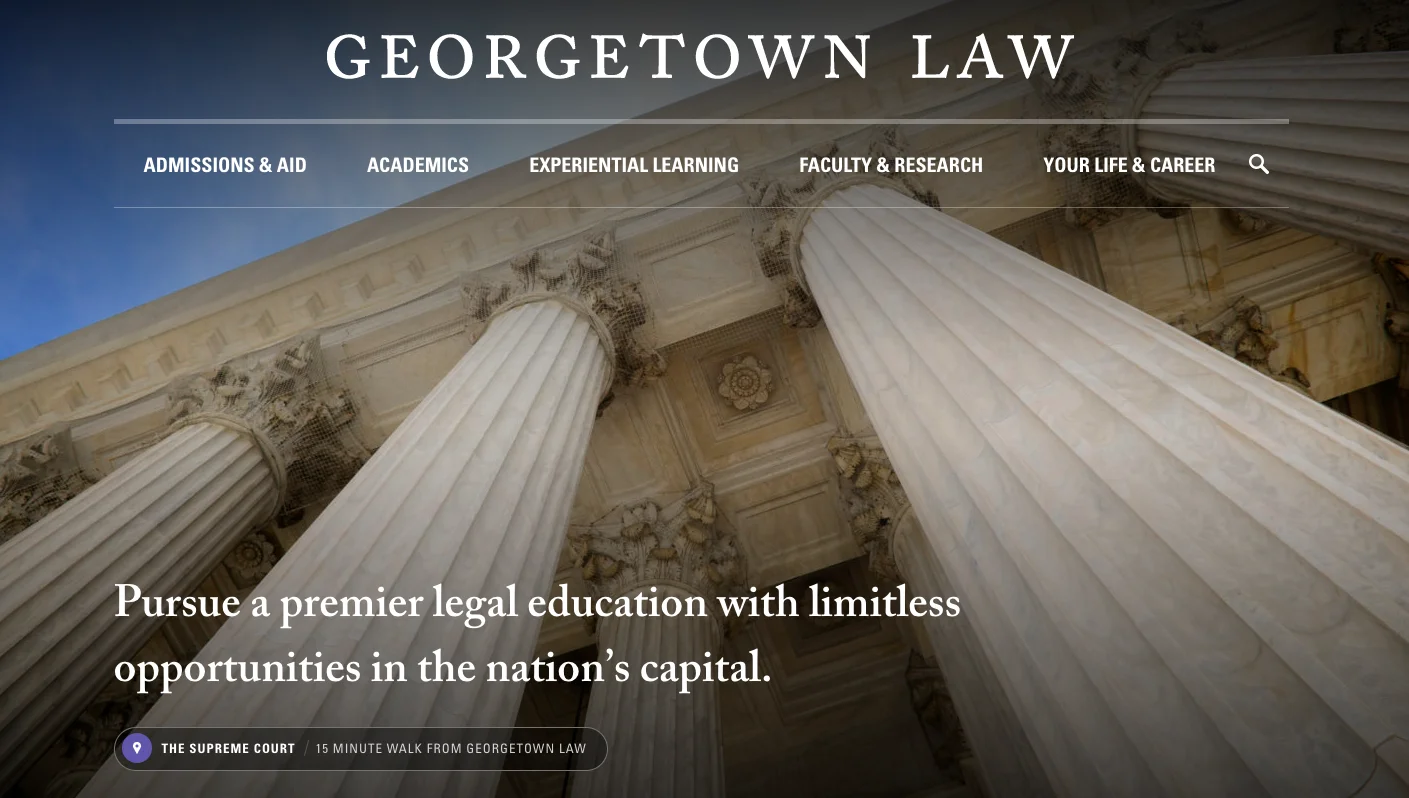 乔治城大学法学院以其卓越的学术成就和出色的教学质量而著名,在许多法律领域具有强大的研究实力和专业知识。学院在国际法、商法、知识产权法、公法、刑法等领域具有突出的专长,并设有相关的研究中心和机构。