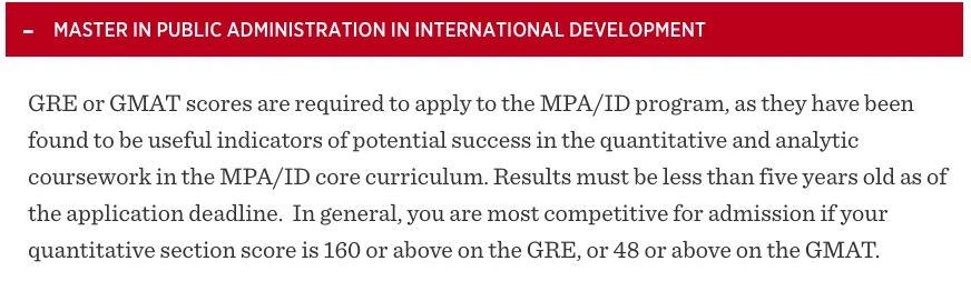 政治专业以及其分支的所有专业都需要很多不同领域的课来完善和辅助更深层的学习和研究。学生需要具备扎实的学术基础和一定的相关经验,如研究项目、实习经历等等。通常情况下,语言成绩(托福或雅思)以及GRE/GMAT都是需要提交的。不同的学校和项目对申请者的背景要求也会有所不同,例如哈佛的MPA/ID项目就明确地表示GRE的数学单项需要达到160分以上(或GMAT数学部分48分以上)。