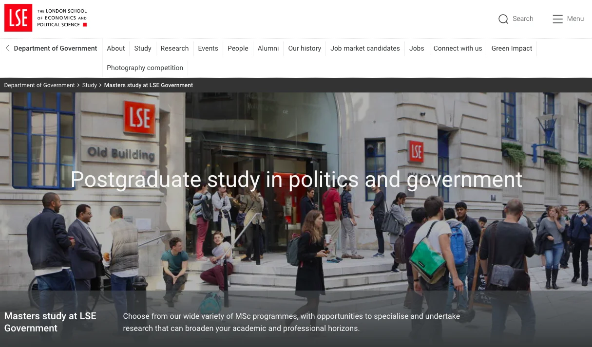 LSE政治学院提供7个硕士项目,包括:政治学(Political Science)、政治理论(Political Theory)、公共政策和管理(Political Policy and Administration)、政治规章(Regulations),其中政治学又细分为冲突研究和比较政治(Conflict Studies and Comparative Politics)、国际政治(Global Politics)、政治学与政治经济(Political Science and Political Economy)和政治行为学(Political Behaviour)。