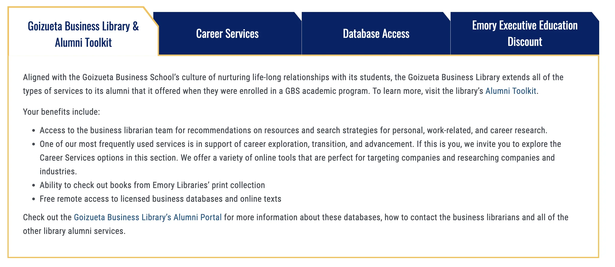 埃默里戈伊祖塔商学院(Goizueta Business School)成立于1919年,目前已拥有百年的建成史,是美国最早期建成的商学院之一。学院充足的财政补助,优秀的教学法,以及超强的领导力,在世界范围内都享有很好的声誉。学院的工商管理硕士项目一直以来被《美国商业周刊》、《经济学家》、《美国新闻与世界报道》,以及《福布斯》等杂志评为世界最佳工商管理硕士的前25名。它拥有一流的师资力量,提供优质的教育服务拥有完善的教学设施,并且拥有一个强大的校友网络。埃默里商学院的学生可以选择攻读MBA,EMBA,MFin,MSM等多种学位,并且可以参加多种实习项目,以提高自身的就业竞争力。