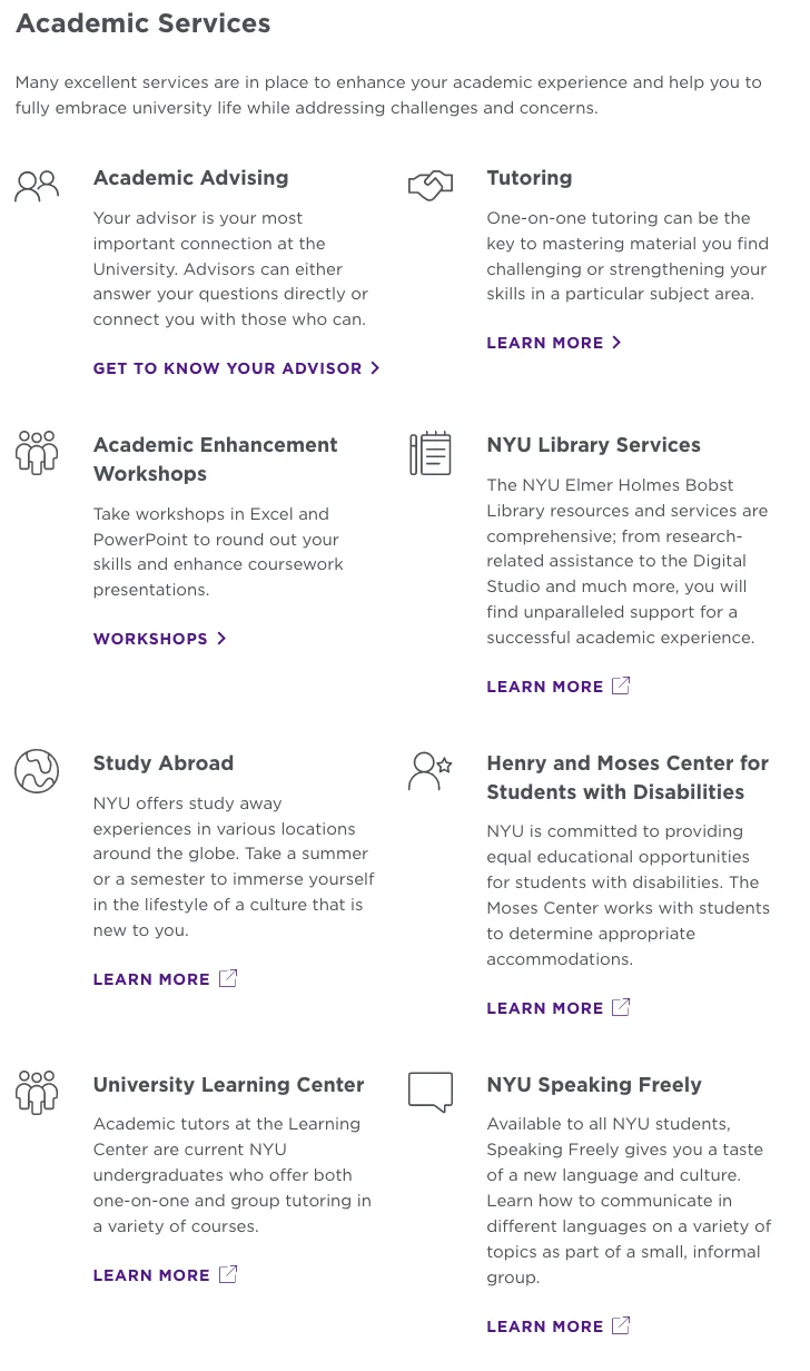 纽约大学(New York University)建立于1831年,是目前最大的美国私立大学之一。在美国3,000多所高等院校中,只有60所高校入选了美国大学协会成员,纽约大学是其中之一。纽约大学在成立之初只有158个学生,现在已经发展成为超过50,000名注册学生,除了位于纽约的主校区,在上海和阿布扎比也有分校。如今的纽约大学十分多元化和国际化,除了有来自美国每个州的学生之外,还有来自另外133个国家的学生、访问学者等。纽约大学除了位于国际大都市纽约这一得天独厚的地理优势外,更是学习,教学,研究,发明创新的平台。