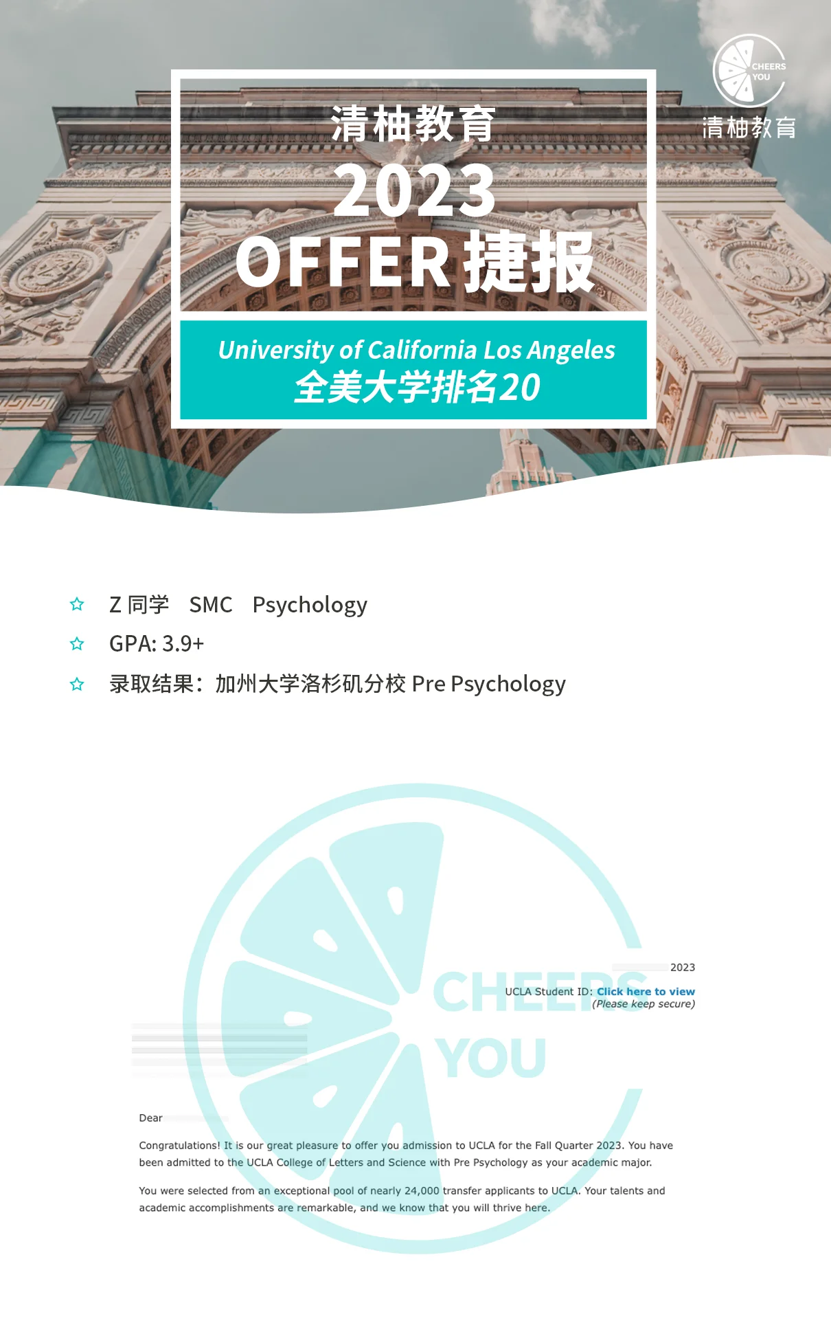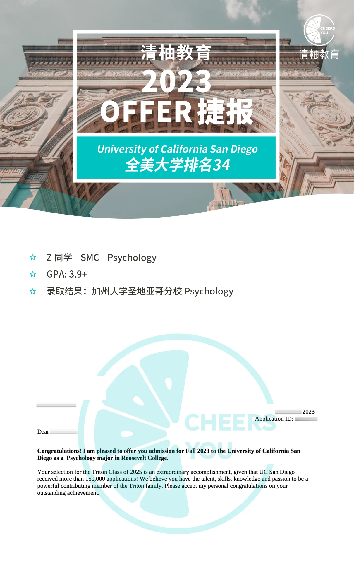 在四月焦急的等待中,Ada陆续等到了UCI和UCR的offer。努力终将得到回报,她最终也成功拿下UCLA和UCSD心理学的录取通知书!