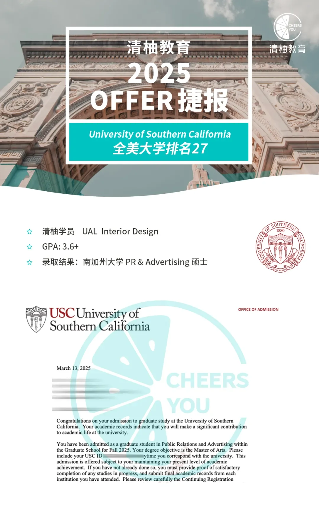 从艺术圣殿UAL到传媒殿堂USC,英本学姐丰富市场经验,跨专业斩获JHU/BU/南加大双黄蛋录取!