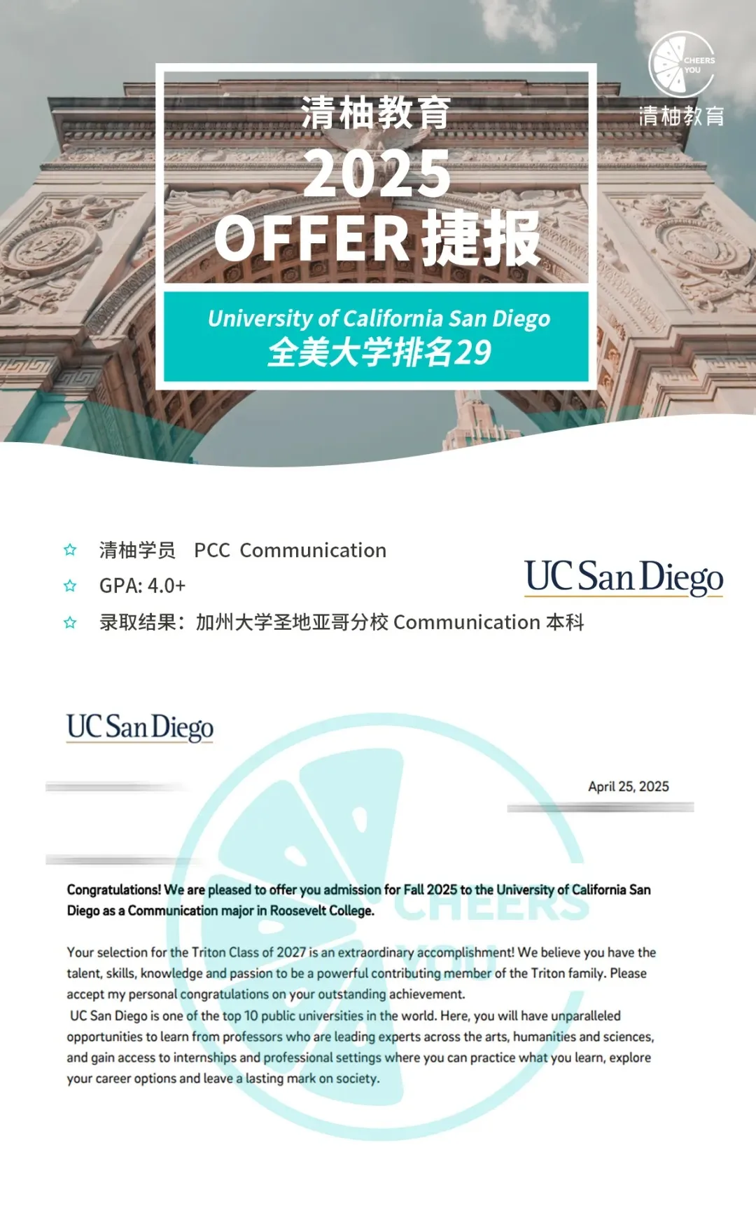 转学0拒信,UC全满贯!PCC社大学长早早规划、做足提升,连下UCLA/UCB/UCSD/UCI录取!