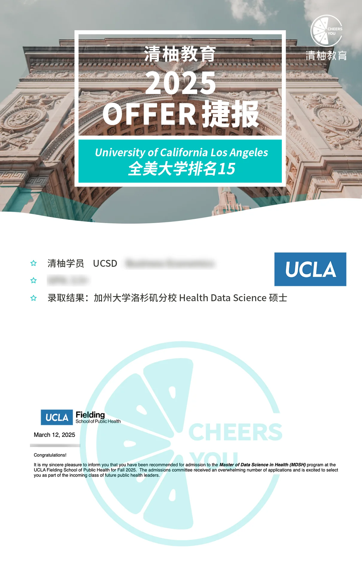 加州大学洛杉矶分校Health Data Science硕士录取!